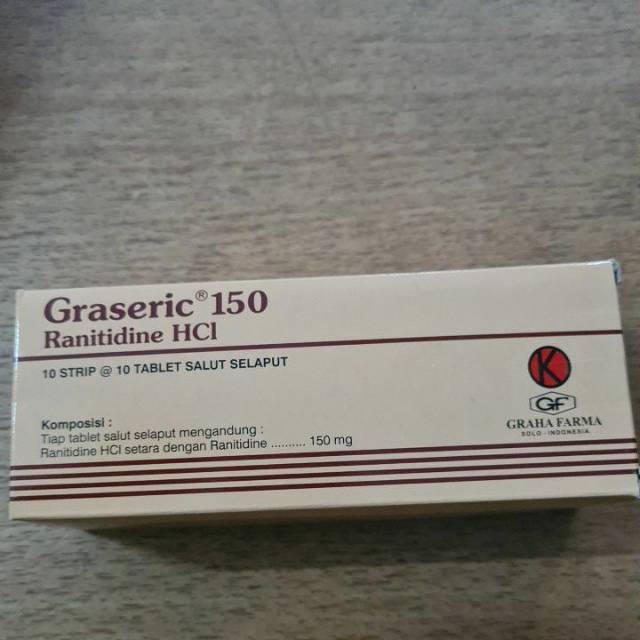 Graseric tablet salut selaput 150 mg dan Ranitidine HCl tablet salut selaput 150 mg pemegang izin edar oleh PT Graha Farma. Untuk Gastroesophageal Reflux Disease GERD 150 mg 2 kali sehari atau 300 mg sebelum tidur malam selama sampai 8. Obat Ranitidine sebaiknya tidak diberikan kepada orang yang pernah mengalami keluhan porfiria akut.
